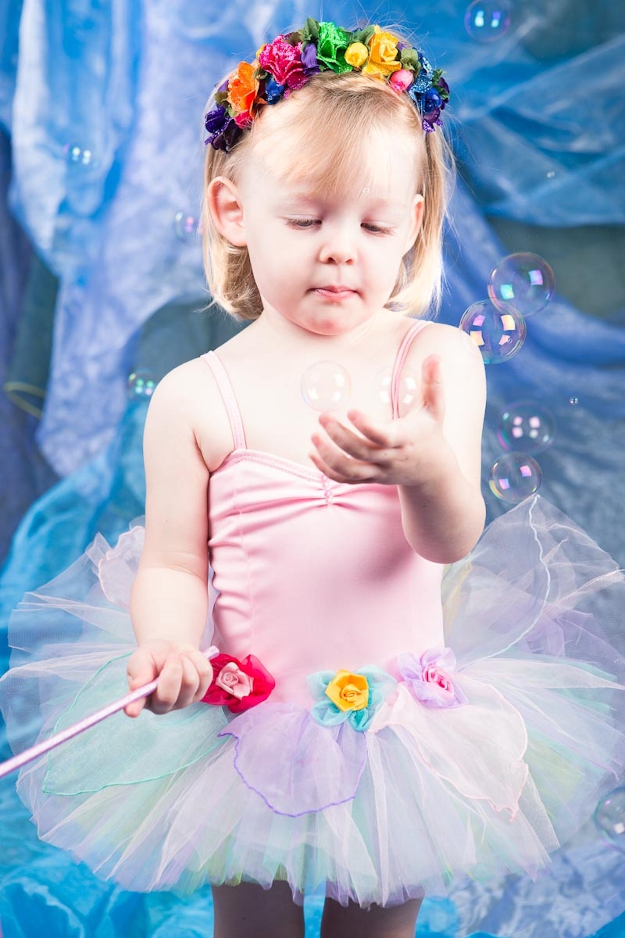 Every little ballerina needs a tutu, comes with layers of pastel rainbow soft ruffled tulle, organza pastel petals on top of the tutu with organza rosettes at the front and all attached to a 100% polyester leotard. A must for every little ballerina.